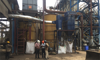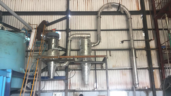 Flash DryerFlash Dryers are characterized by short residence time of few seconds. Hence, great care needs to be taken in dispersion of the feed in the drying air, which is generally in the form of cake so that true surface water gets evaporated from the feed . Otherwise, the larger particles in the feed material may require longer drying time than the smaller ones in order to reach the desired moisture content. The principle of a flash dryer is simple. Very hot air (180°C) is sucked and mixed with the Wet product inside a very long pipe (called the flash pipe) up to 15 meters high and 1 meter in diameter. The Wet product is passing through the pipe very quickly (in a "flash") and is dried to about 10% moisture. After the flash pipe the now dried Product and remaining air are separated from each other in a very large cyclone. The remaining air which has a temperature of about 65°c is sucked through the ID Fan and blown out of the very exhaust pipe. |