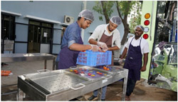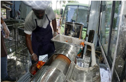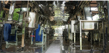 MPU has three different compartment namely, 1. Driver cabin, 2. power room and 3. processing center. The power room consists of a steam generator, electrical generator and water storage tank. MPU processing unit is sequentially arranged with the processing machineries for processing of fruits and vegetables. The major equipment’s in the processing unit are tray washer, blancher, mechanical pulper, evaporator, bottle filling machine, corking unit, autoclave, bottle cooling, and wash basin. |